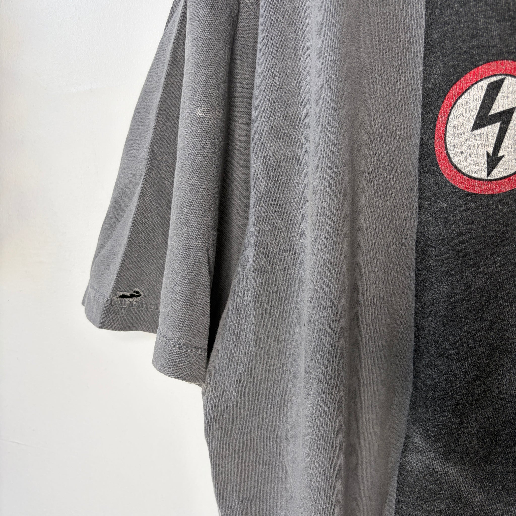 soft broken in cotton with cracking and fading and holes throughout